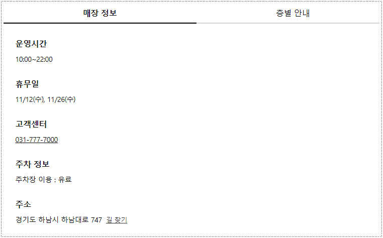 | 휴점일 | 매월 2번째, 4번째 수요일 |