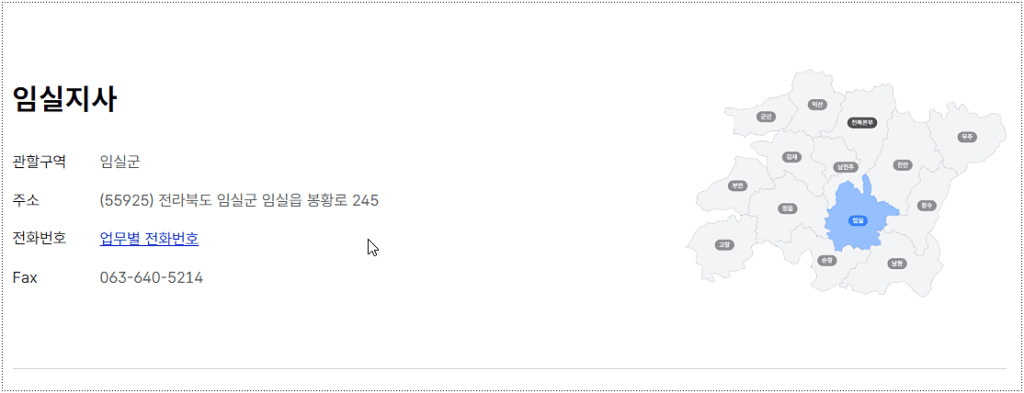 한국전력공사 임실지사 전화번호, 팩스번호, 주소