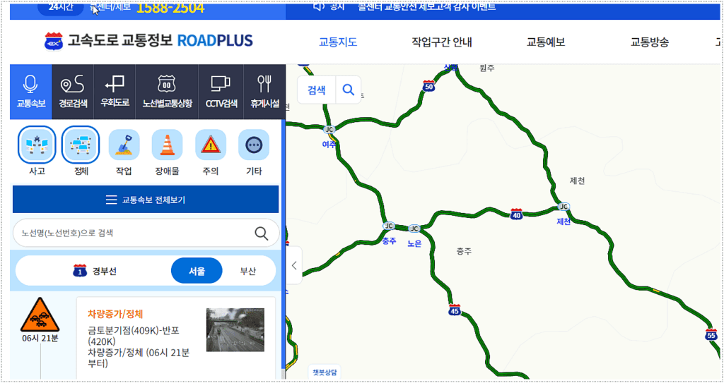 남쪽 외곽이지만 캠핑 시즌이나 주말 레저 이동량이 많을 때는 돌발 정체가 생기기도 합니다. 로드플러스 돌발 정보 메뉴가 유용한 이유가 여기에 있습니다.